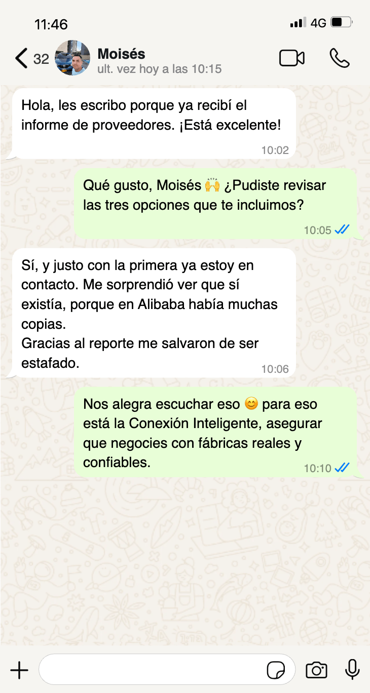 Verificamos la fábrica real, revisamos sus documentos, analizamos varios proveedores, te mostramos el riesgo real (🟢🟠🔴) y te damos una asesoría personalizada para resolver dudas uno a uno.